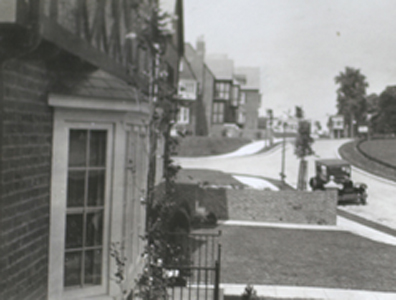 Foxhall Village and Greenwich Parkway shortly after construction was complete, circa 1930. Photo from Henry Boss notebook, owned by Malcolm and Daphne Ross.