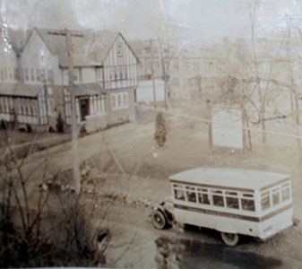 Private bus service on Reservoir Road connected residents to the city. Photo taken around 1930. Photo from Henry Boss notebook, owned by Malcolm and Daphne