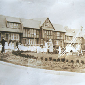 A maypole party in Foxhall Village on the Greenwich Parkway Circle, circa 1930. Photo from Henry Boss notebook, owned by Malcolm and Daphne Ross.